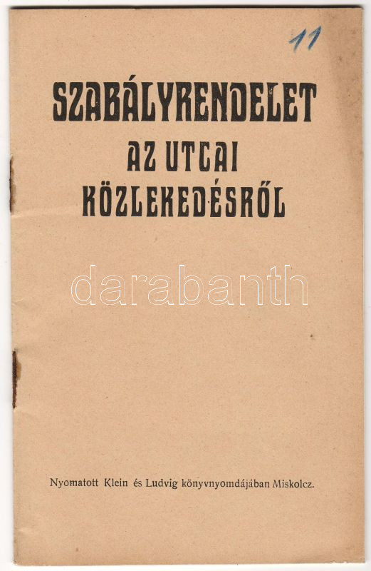 1914 Szabályrendelet az utcai közlekedésről; Klein és Luvig nyomdája M... https://www.darabanth.com/de/34-Fernauktion/34.0/Andere-Sammelgebiete/~107/1914-Szabalyrendelet-az-utcai-kozlekedesrol-Klein-es-Luvig-nyomdaja-Miskolcz~II68106