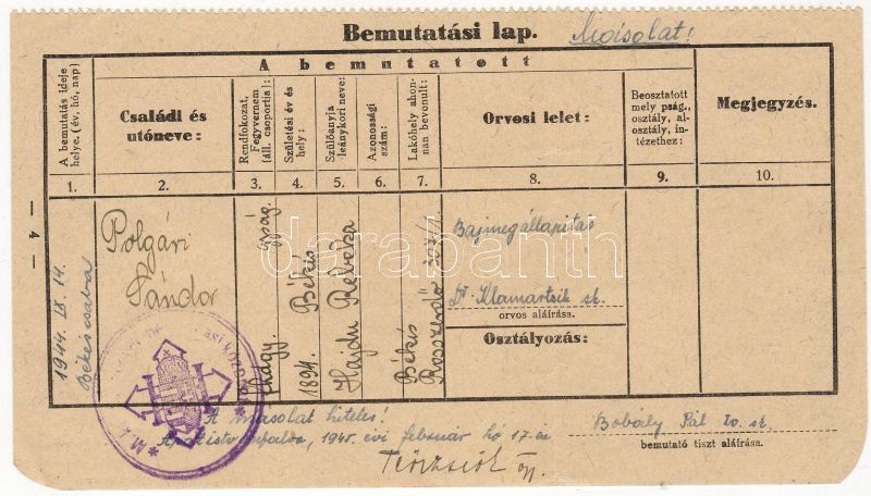 Bemutatási lap nyilaskeresztes pecséttel https://www.darabanth.com/de/34-Fernauktion/34.0/Andere-Sammelgebiete/~107/Bemutatasi-lap-nyilaskeresztes-pecsettel~II68052