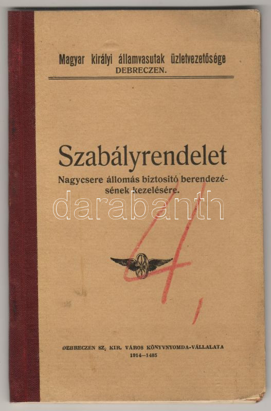 M. kir. Államvasutak szabályrendelet Nagycsere állomás biztosító beren... https://www.darabanth.com/de/34-Fernauktion/34.0/Andere-Sammelgebiete/~107/M-kir-Allamvasutak-szabalyrendelet-Nagycsere-allomas-biztosito-berendezeseinek-kezelesere~II68116