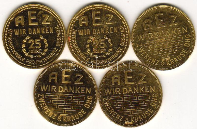 Beschreibung: NSZK 5db privát arany emlékveret "AEZ" összesen 23,02g T:PP,2 benne sérült