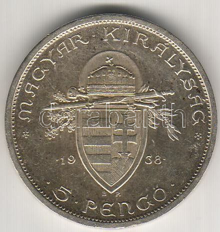 1938. 5P "Szent István" ezüst T:2+ https://www.darabanth.com/de/34-Fernauktion/34.0/Numismatik/~114/1938-5P-Szent-Istvan-ezust-T2plus~II67422