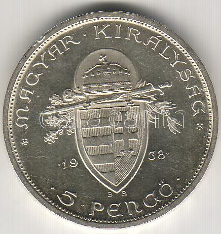 Beschreibung: 1938. 5P "Szt. István" ezüst T:1/2 pici ph.
