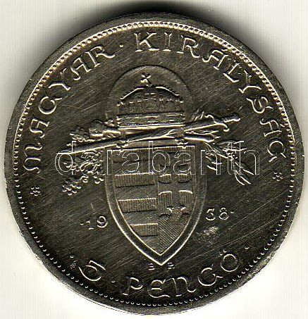1938. 5P "Szt. István" ezüst T:2/3 pici ph. https://www.darabanth.com/de/34-Fernauktion/34.0/Numismatik/~114/1938-5P-Szt-Istvan-ezust-T23-pici-ph~II67446