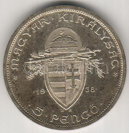1938. 5P "Szt. István" ezüst T:2+ https://www.darabanth.com/de/34-Fernauktion/34.0/Numismatik/~114/1938-5P-Szt-Istvan-ezust-T2plus~II67401