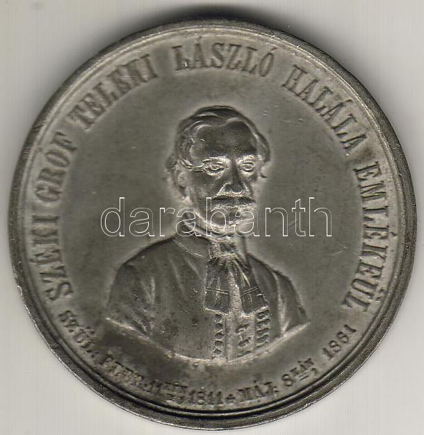 1861. "Gr. Teleki László" fém plakett T:2- https://www.darabanth.com/de/34-Fernauktion/34.0/Numismatik/~115/1861-Gr-Teleki-Laszlo-fem-plakett-T2-~II68433