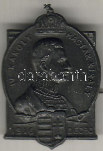 1916. "IV. Károly" koronázási fém kitűző T:2 https://www.darabanth.com/de/34-Fernauktion/34.0/Numismatik/~115/1916-IV-Karoly-koronazasi-fem-kituzo-T2~II68427