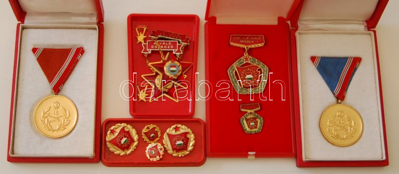 Beschreibung: Modern érdemérem, kitüntetés tétel benne 2 db klf "Honvédelmi Érdemérem", Szoc.Brigád kitüntetések klf méretekben összesen 12db tokkal T:2