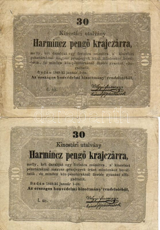 1849. 30Kr (2x) 2 klf szín- és vágatvariáns T:III https://www.darabanth.com/de/34-Fernauktion/34.0/Numismatik/~126/1849-30Kr-2x-2-klf-szin-es-vagatvarians-TIII~II68422