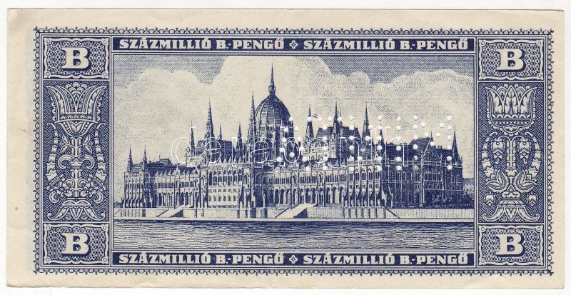 1946. 100.000.000B.-pengő "MINTA" lyukasztással T:I- https://www.darabanth.com/de/34-Fernauktion/34.0/Numismatik/~126/1946-100000000B-pengo-MINTA-lyukasztassal-TI-~II68264