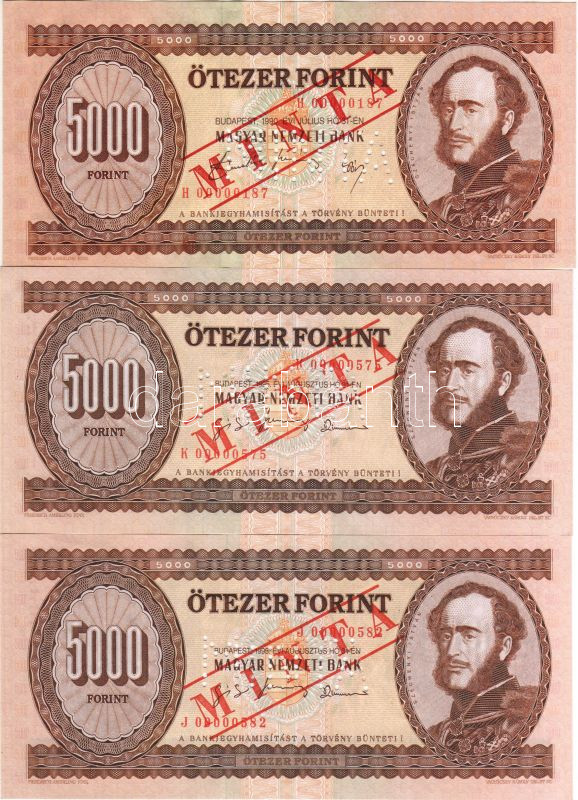 Beschreibung: 1990H,1995J,1995H 5000Ft "000..." szériás "Minta" lyukasztással + piros fny-sal T:I