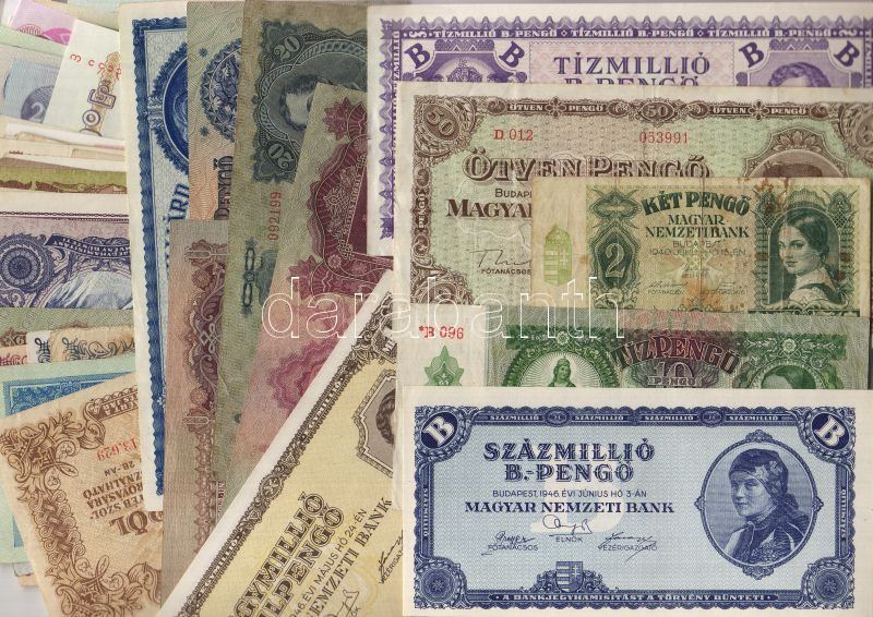 Beschreibung: 35db magyar bankjegy pengő, infla benne jobbakkal + 21db klf külföldi hajtatlan