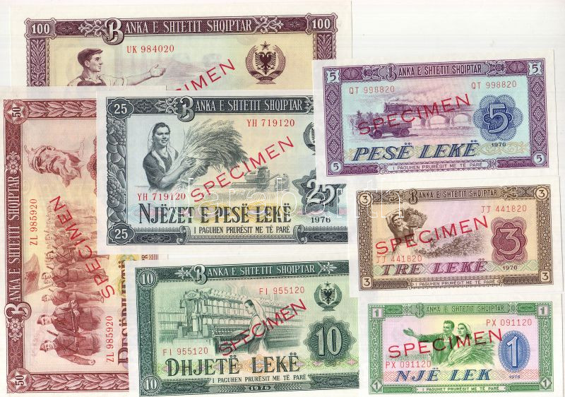 Albánia 1976. 1,5,10,25,50,100L sor 6 klf db "Specimen" fny-sal T:I https://www.darabanth.com/de/34-Fernauktion/34.0/Numismatik/~126/Albania-1976-1-5-10-25-50-100L-sor-6-klf-db-Specimen-fny-sal-TI~II68385