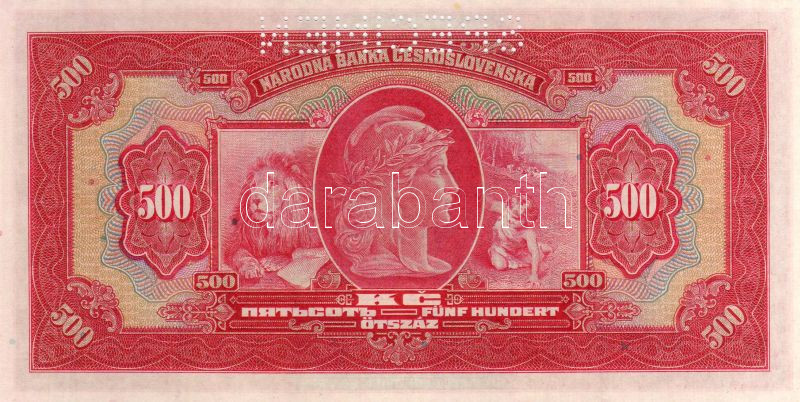 Csehszlovákia 1929. 500K "SPECIMEN" lyukasztással T:I https://www.darabanth.com/de/34-Fernauktion/34.0/Numismatik/~126/Csehszlovakia-1929-500K-SPECIMEN-lyukasztassal-TI~II68351
