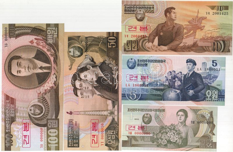 Beschreibung: Észak-Korea 1992. 1,5,10,50,100W sor "Specimen" fny-sal T:I