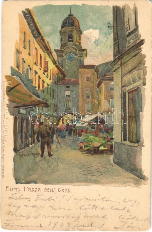 Beschreibung: 1902 Fiume, Rijeka; Piazza dell'Erbe / square. Kuenstlerpostkarte No. 1137. von Ottmar Zieher litho s: Raoul Frank