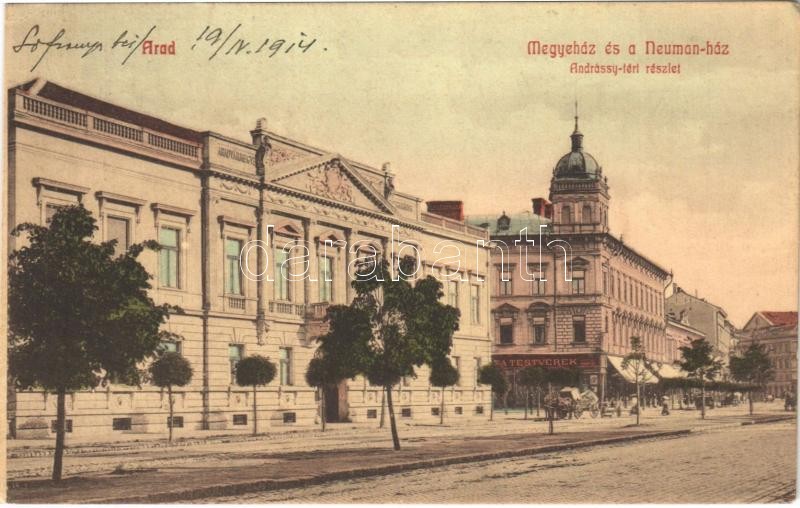 1914 Arad, megyeház, Neuman ház, Andrássy tér, üzlet / county hall, sh... https://www.darabanth.com/de/34-Gross-Auktion/34.1/Ansichtskarten/Siebenburgen~14308/1914-Arad-megyehaz-Neuman-haz-Andrassy-ter-uzlet-county-hall-shops-square~II2251527