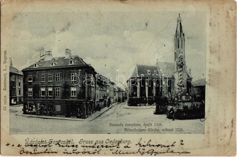 1902 Sopron, Oedenburg; Bencés templom (épült 1526), Szentháromság szo... https://www.darabanth.com/de/34-Gross-Auktion/34.1/Ansichtskarten/Ungarn~14307/1902-Sopron-Oedenburg-Bences-templom-epult-1526-Szentharomsag-szobor-gyogyszertar-r~II1926646