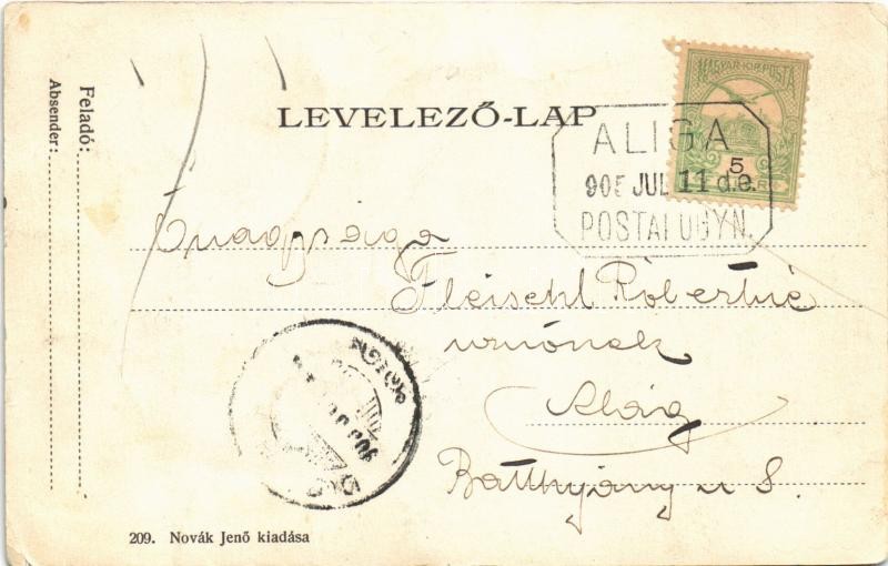 Beschreibung: 1905 Balatonaliga, Aliga (Balatonvilágos); vendéglő. Novák Jenő kiadása 209. (fa)