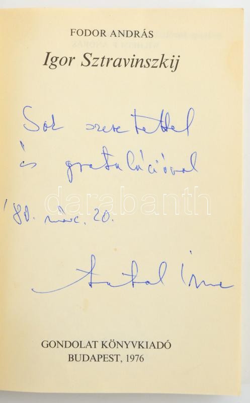 Fodor András: Sztavinszkij szemtől-szemben. Több dedikálással: Antal Imre, Czigány György, Szulyó Ernő, Vellner Andrea és más híres zenészek. Kiadói papírkötésben. Bp., 1976. Gondolat