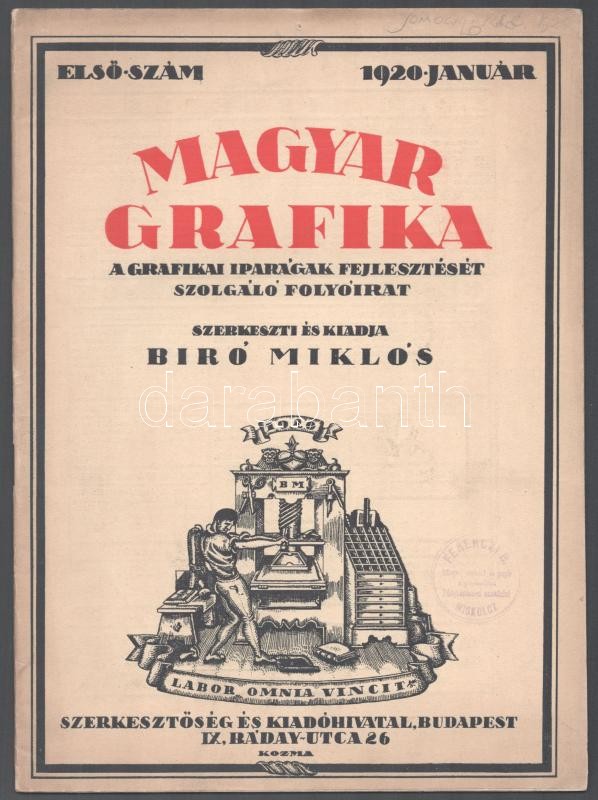 1920 A Magyar Grafika, a grafikai iparágak fejlesztését szolgáló folyó... https://www.darabanth.com/de/34-Gross-Auktion/34.1/Kunst-Dokumente-andere-Sammelgebiete/Drucksachen~14277/1920-A-Magyar-Grafika-a-grafikai-iparagak-fejleszteset-szolgalo-folyoirat-Szerkeszti-es-kia~II2200952