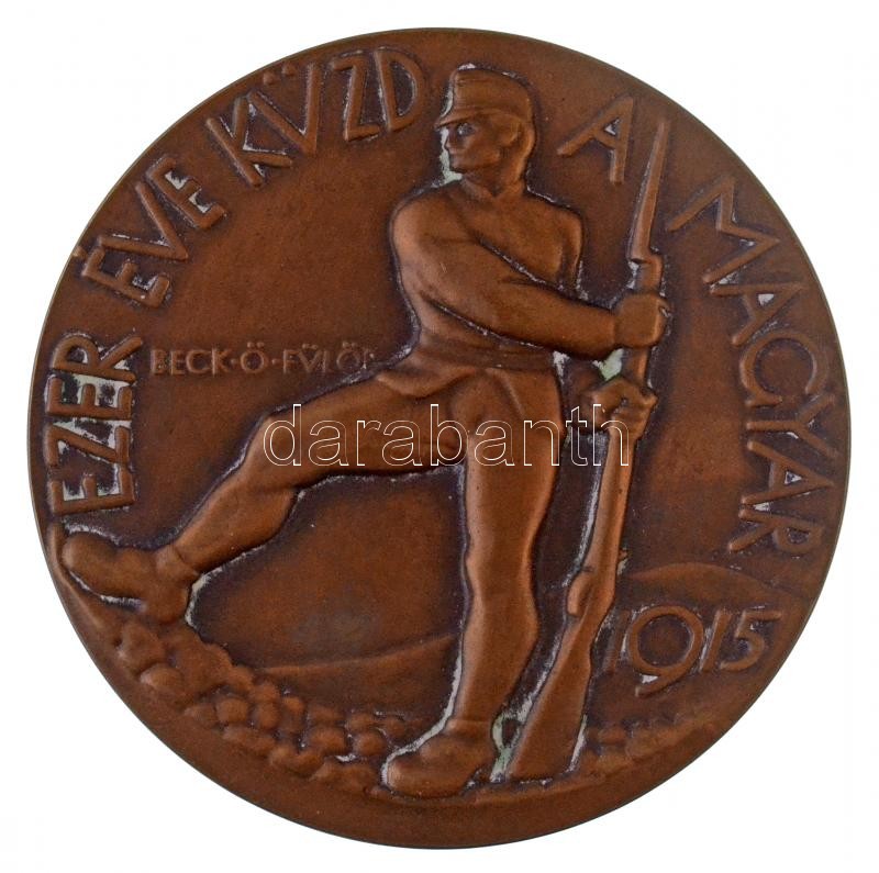 Beck Ö. Fülöp (1873-1945) 1915. "Ezer éve küzd a magyar" Br emlékérem. "EZER ÉVE KÜZD A MAGYAR 1915 / 1000 ÉVE" (139,41g/70mm) T:2 / Hungary 1915. "A Thousand Years of Struggle" commemorative Br medallion. Sign: Fülöp Beck Ötvös (139,41g/70mm) C:XF