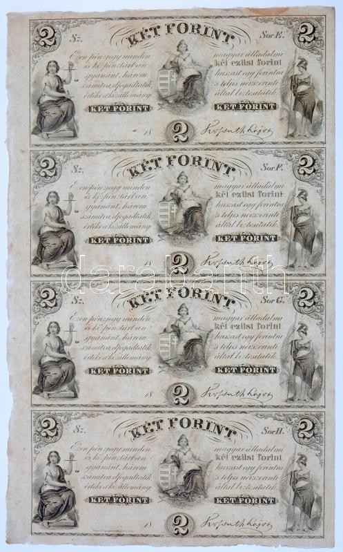 1852. 2Ft "Kossuth bankó" kitöltetlen "E","F","G","H" négyes ívben T:I- / Hungary 1852. 2 Forint blokk of 4 (E,F,G,H) without date and serial number C:AU