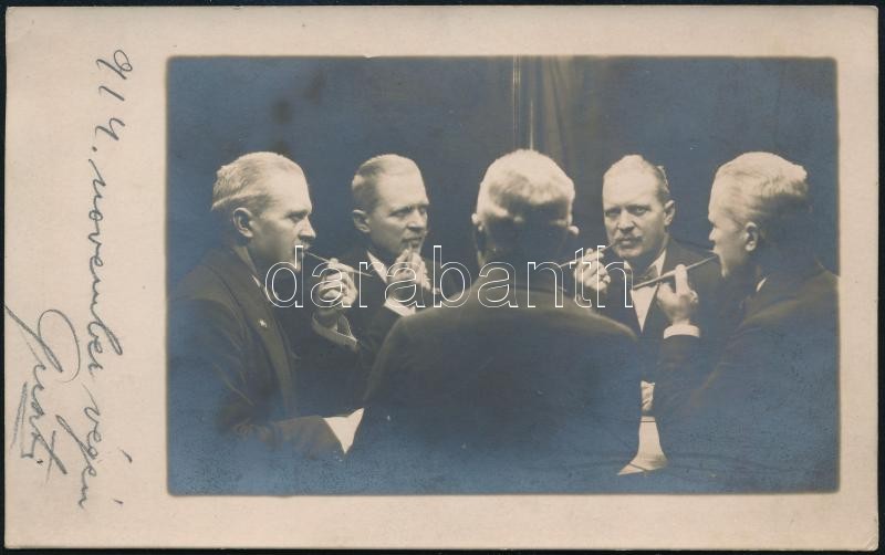 1914 Cigarettázók, aláírt vintage trükk-fotó 9x14 cm https://www.darabanth.com/de/340-Fernauktion/340.0/Fotografie/Foto~500020/1914-Cigarettazok-alairt-vintage-trukk-foto-9x14-cm~II1914944