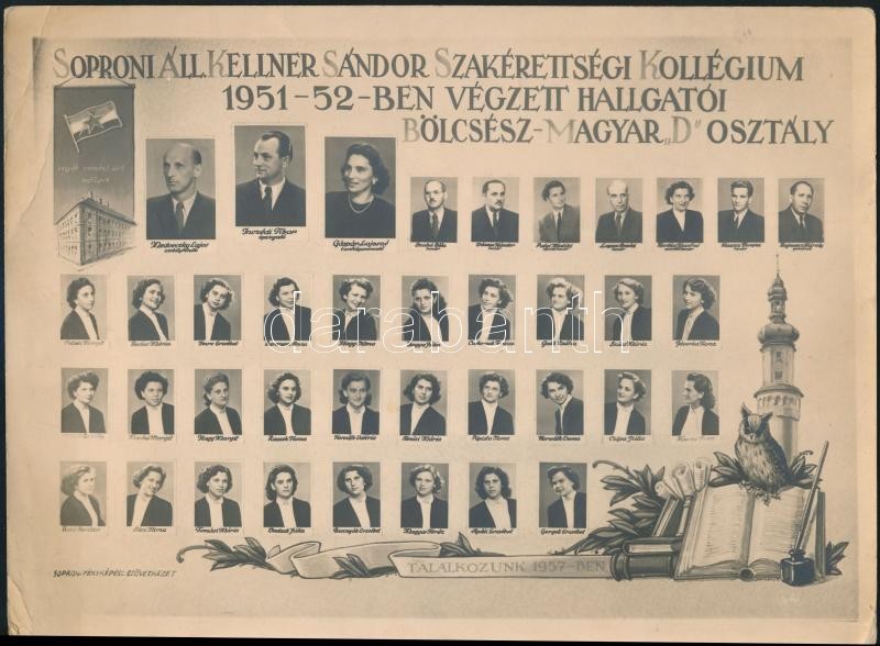 1952 Sopron, Kellner Sándor Szakérettségi Kollégium tanárai és végzős ... https://www.darabanth.com/de/340-Fernauktion/340.0/Fotografie/Foto~500020/1952-Sopron-Kellner-Sandor-Szakerettsegi-Kollegium-tanarai-es-vegzos-diakjai-kistablo-ne~II1909506