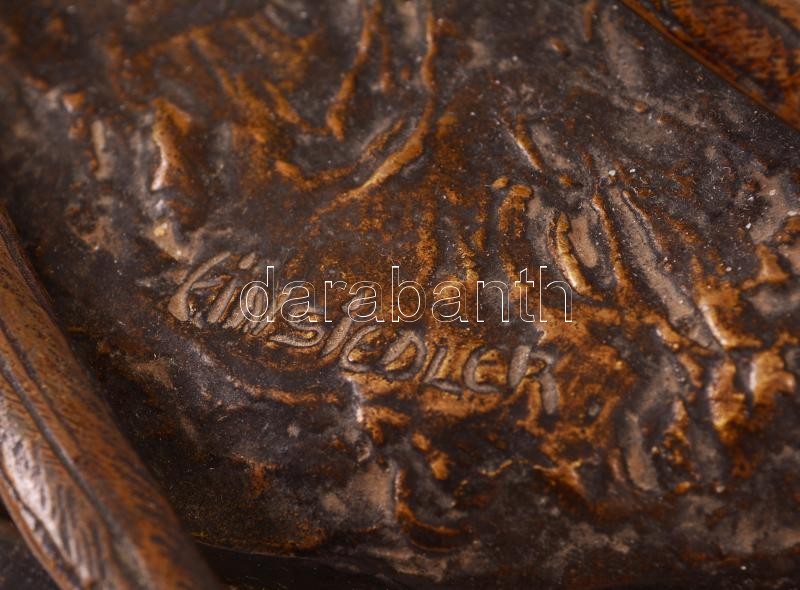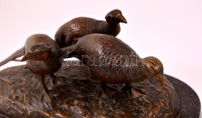XIX. sz. vége: Einsiedler szignóval: Három fácánt ábrázoló bronz szobor, márvány talapzaton. Jelzet: Einsiedler. / Art Nouveau sculpture bronze pheasants with marble base. Signed: Einsiedler. 35x12 cm