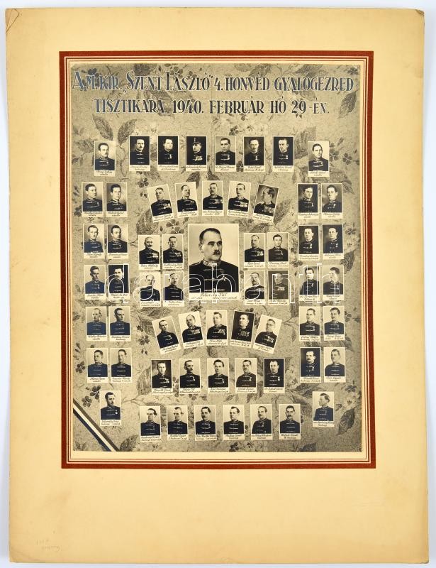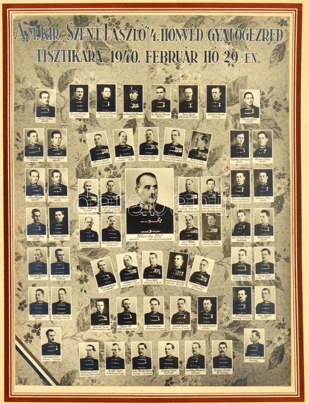 1940 A M. Kir. Szent László 4. honvéd gyalogezred tisztikara. Nagymére... https://www.darabanth.com/de/340-Fernauktion/340.0/Kunst-Dokumente-andere-Sammelgebiete/Militaria~500027/1940-A-M-Kir-Szent-Laszlo-4-honved-gyalogezred-tisztikara-Nagymeretu-tablokep-kartonon-26~II1909994