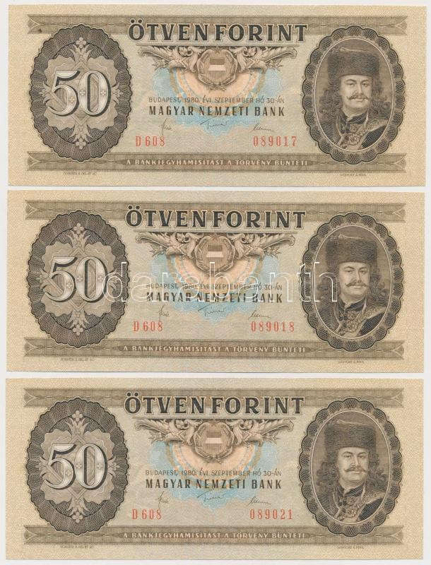 Beschreibung: 1980. 50Ft (3x) sorszámkövető pár és egy közeli sorszám T:I-,II