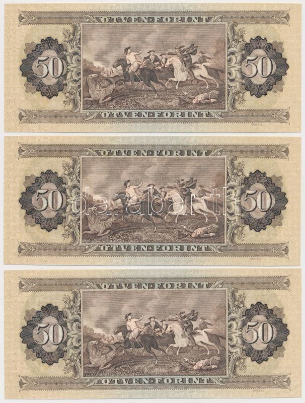 1980. 50Ft (3x) sorszámkövető pár és egy közeli sorszám T:I-,II https://www.darabanth.com/de/340-Fernauktion/340.0/Numismatik/Ungarische-Banknoten~2000007/1980-50Ft-3x-sorszamkoveto-par-es-egy-kozeli-sorszam-TI-II~II1911322