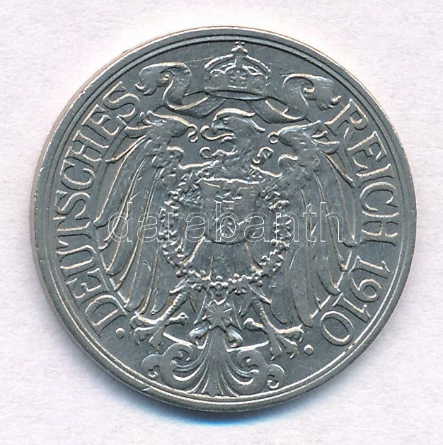 German Empire 1910A 25 Pfennig ... https://www.darabanth.com/de/340-Fernauktion/340.0/Numismatik/Weltweit-Munzen~2000013/Nemet-Birodalom-1910A-25pf-Ni-T1-2--German-Empire-1910A-25-Pfennig-Ni-CAU-XF~II1911386
