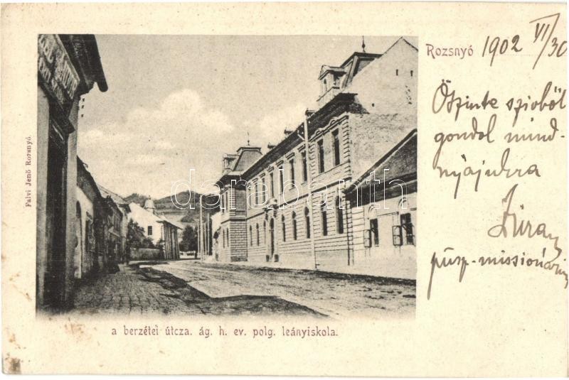 1902 Rozsnyó, Roznava; a berzétei utcai Evangélikus polgári leány isko... https://www.darabanth.com/de/341-Fernauktion/341.0/Ansichtskarten/Slowakei~2000023/1902-Rozsnyo-Roznava-a-berzetei-utcai-Evangelikus-polgari-leany-iskola-Kiadja-Falvi-Jeno-~II1920707