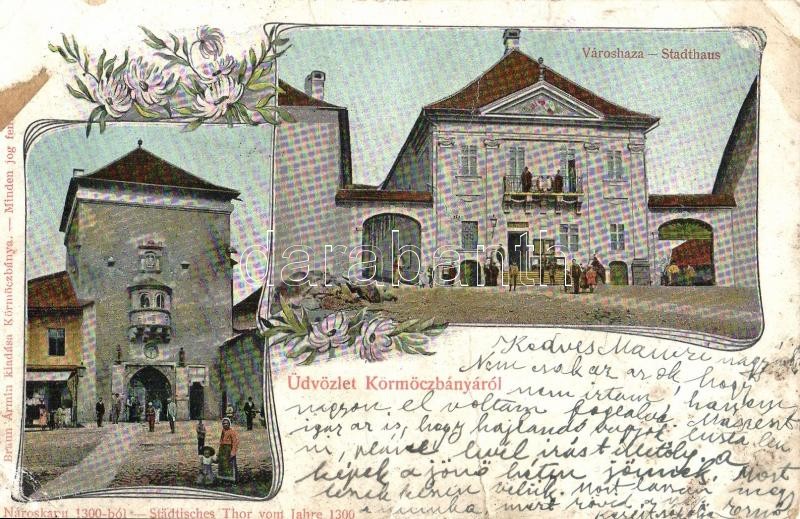 1909 Körmöcbánya, Kremnitz, Kremnica; Városháza, Városkapu 1300-ból. B... https://www.darabanth.com/de/341-Fernauktion/341.0/Ansichtskarten/Slowakei~2000023/1909-Kormocbanya-Kremnitz-Kremnica-Varoshaza-Varoskapu-1300-bol-Braun-Armin-kiadasa-~II1922964