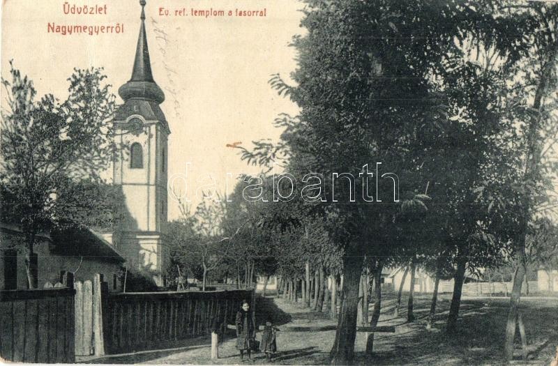 1916 Nagymegyer, Calovo, Velky Meder; Református templom a fasorral. W... https://www.darabanth.com/de/341-Fernauktion/341.0/Ansichtskarten/Slowakei~2000023/1916-Nagymegyer-Calovo-Velky-Meder-Reformatus-templom-a-fasorral-W-L-No-102-street-vi~II1921012