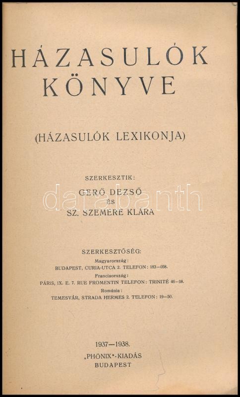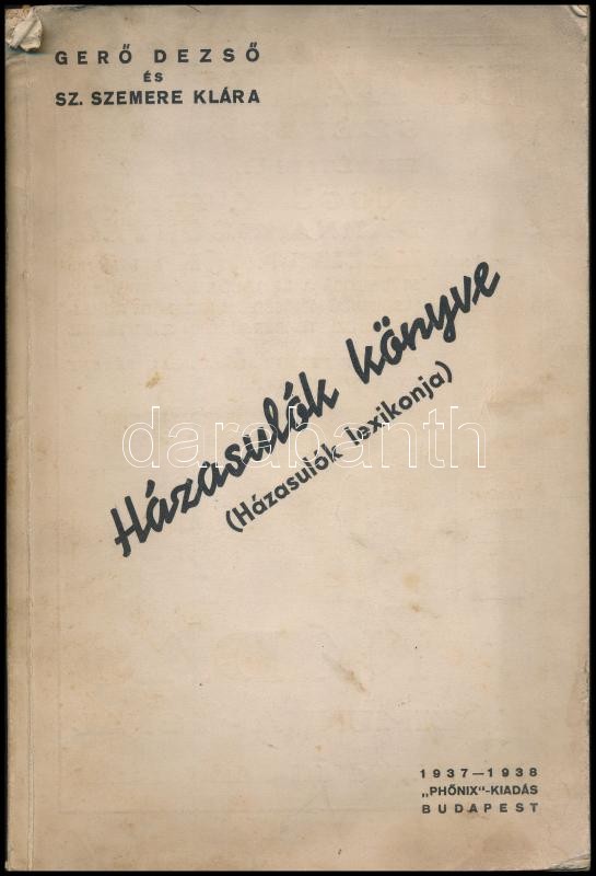 Házasulók könyve. (Házasulók lexikonja.) Szerk.: Gerő Dezső-Sz. Szemer... https://www.darabanth.com/de/341-Fernauktion/341.0/Bucher/Bucher-Andere-kuriositaten~1000018/Hazasulok-konyve-Hazasulok-lexikonja-Szerk-Gero-Dezso-Sz-Szemere-Klara-Bp-1937-1938~II1848320