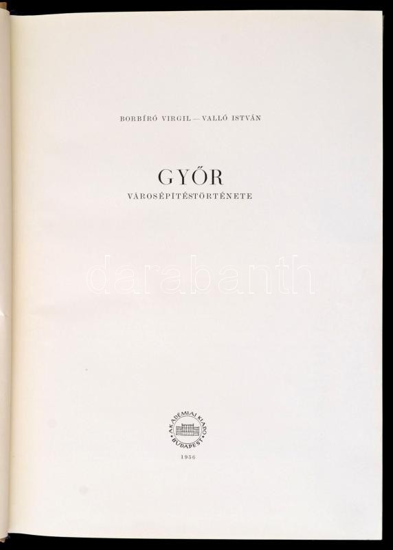 BorbÃró Virgil - Valló István: GyÅ‘r városépÃtéstörténete. Bp., 1956, Akadémiai Kiadó. Kiadói egészvászon kötés, sok képpel, ajándékozási sorokkal, beragasztott fülszöveggel, jó állapotban.