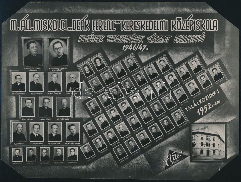 1947 Miskolc, Deák Ferenc Kereskedelmi Középiskola tanárai és végzett ... https://www.darabanth.com/de/341-Fernauktion/341.0/Fotografie/Foto~500020/1947-Miskolc-Deak-Ferenc-Kereskedelmi-Kozepiskola-tanarai-es-vegzett-hallgatoi-kistablo-ne~II1918014