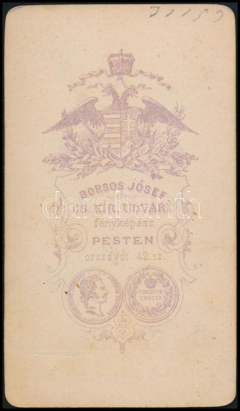 Beschreibung: cca 1870-1875 gróf Pejácsevich Jánosné Lónyay Róza (1852-?) fotója, keméynhátú fotó Borsos József pesti műterméből, feliratozva, 10×6 cm