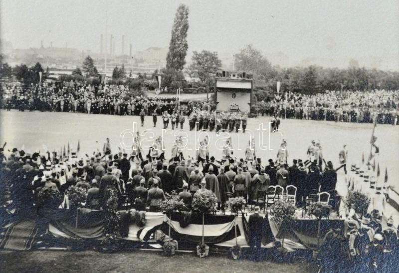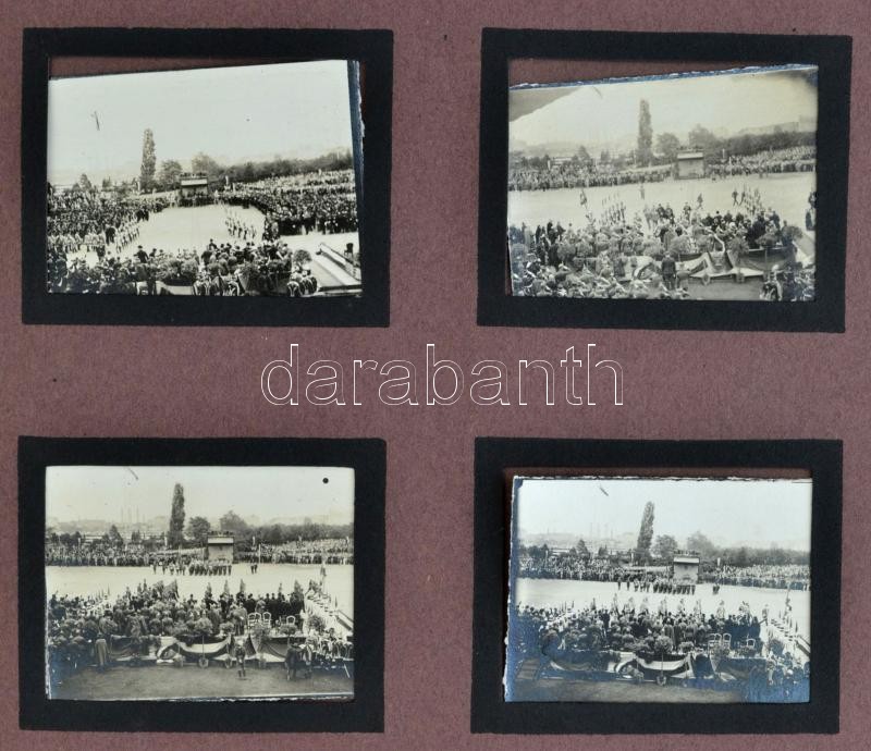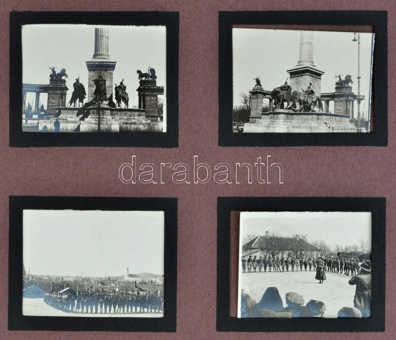 cca 1925 Érintetlen fotóalbum nagyon sok érdekes fotóval: Margit sziget katonai dísszemle, ünnepség. Háborús emlékmű, budapesti látképek, repülők, dunai hajók. Összesen 86 fotó albumban