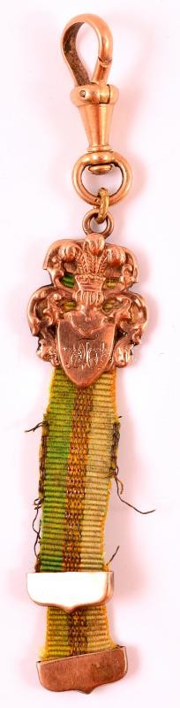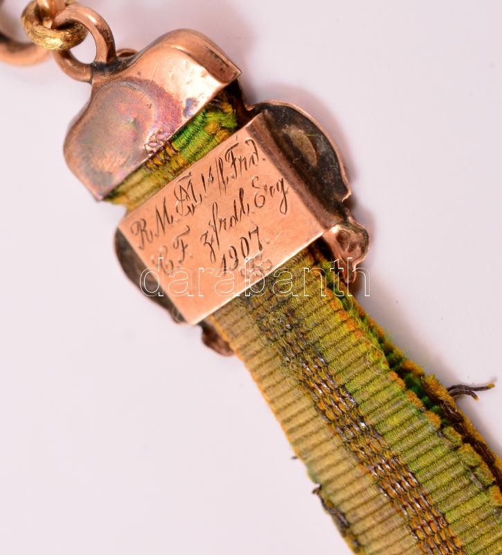 Címeres tiszti lánc. Arany. Au 8K + 14K karabíner 7 cm, br: 2,2 g https://www.darabanth.com/de/341-Fernauktion/341.0/Juwelen/Juwelen~2000020/Cimeres-tiszti-lanc-Arany-Au-8K-plus-14K-karabiner-7-cm-br-2-2-g~II1921341