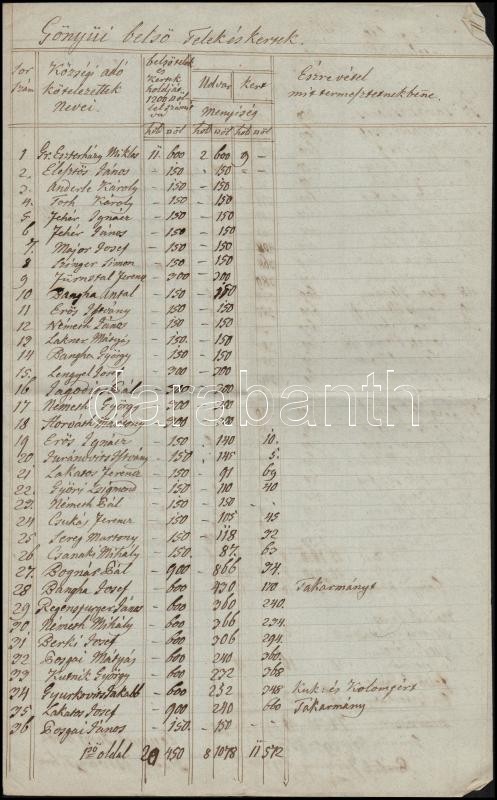 1853 Gönyűi kertek és telkek tulajdonosainak felsorolása és az adófize... https://www.darabanth.com/de/341-Fernauktion/341.0/Kunst-Dokumente-andere-Sammelgebiete/Dokument~500017/1853-Gonyui-kertek-es-telkek-tulajdonosainak-felsorolasa-es-az-adofizetesre-kotelezettek-4-p~II1912683