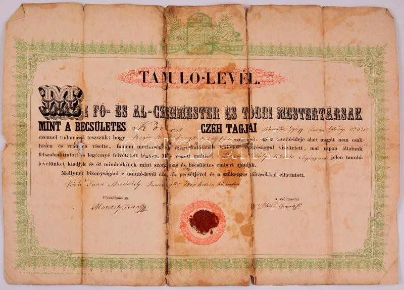 1860 Dunaszerdahely kovács legény szabaduló levele, erősen sérült álla... https://www.darabanth.com/de/341-Fernauktion/341.0/Kunst-Dokumente-andere-Sammelgebiete/Dokument~500017/1860-Dunaszerdahely-kovacs-legeny-szabadulo-levele-erosen-serult-allapotban-55x42-cm~II1922416