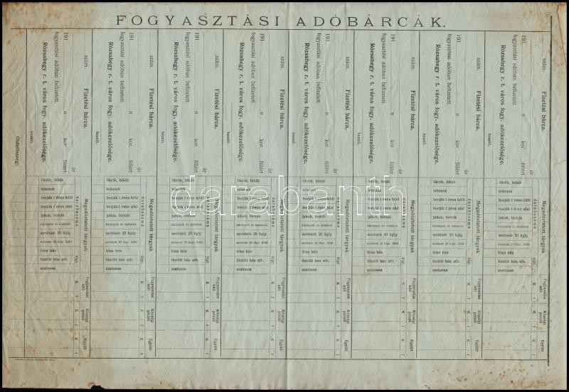 cca 1910 Rózsahegy. Fogyasztási adóbárca teljes ív. Hajtásnyomokkal 30... https://www.darabanth.com/de/341-Fernauktion/341.0/Kunst-Dokumente-andere-Sammelgebiete/Dokument~500017/cca-1910-Rozsahegy-Fogyasztasi-adobarca-teljes-iv-Hajtasnyomokkal-30x46-cm~II1919314
