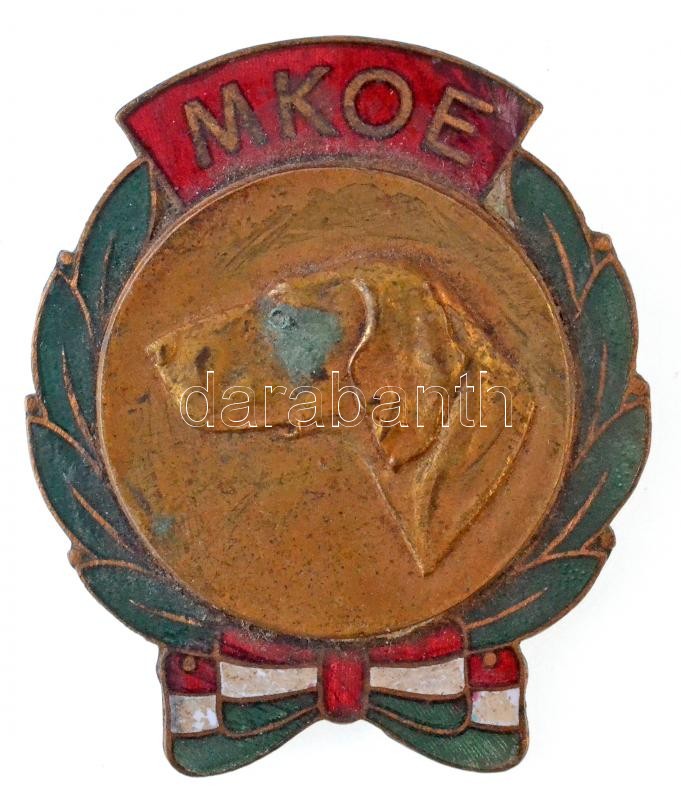 DN "MKOE (Magyar Kutyatenyésztők Országos Egyesülete)" zománcozott fém jelvény (40x47mm) T:2 patina