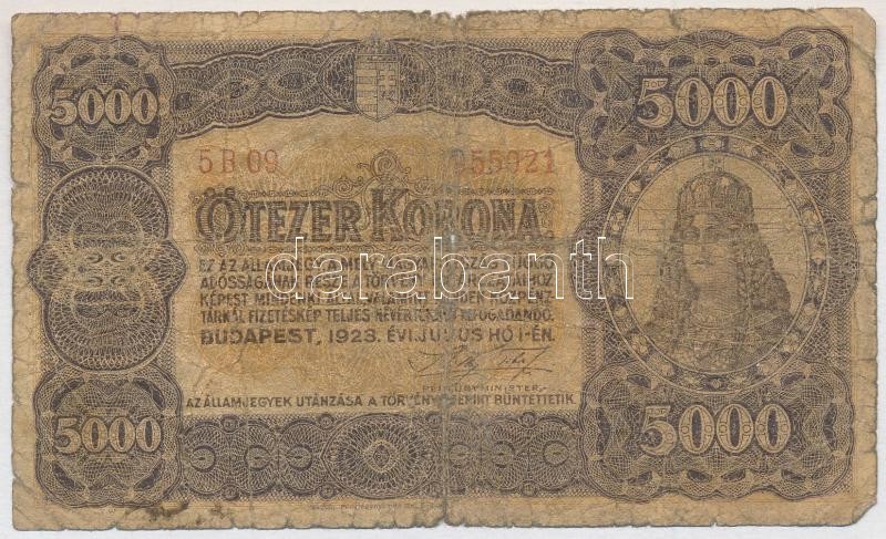 Beschreibung: 1923. 5000K "Magyar Pénzjegynyomda Rt. Budapest" T:III-,IV