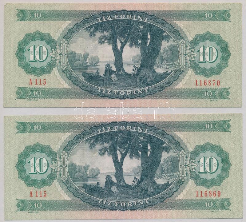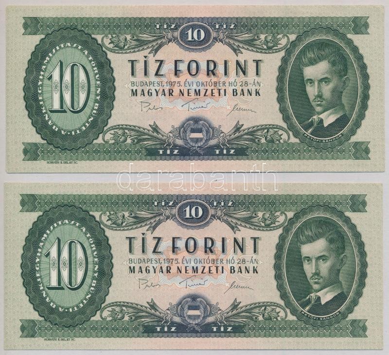 1975. 10Ft (2x) sorszámkövetők T:I nyomdai papírránc https://www.darabanth.com/de/341-Fernauktion/341.0/Numismatik/Ungarische-Banknoten~2000007/1975-10Ft-2x-sorszamkovetok-TI-nyomdai-papirranc~II1921656