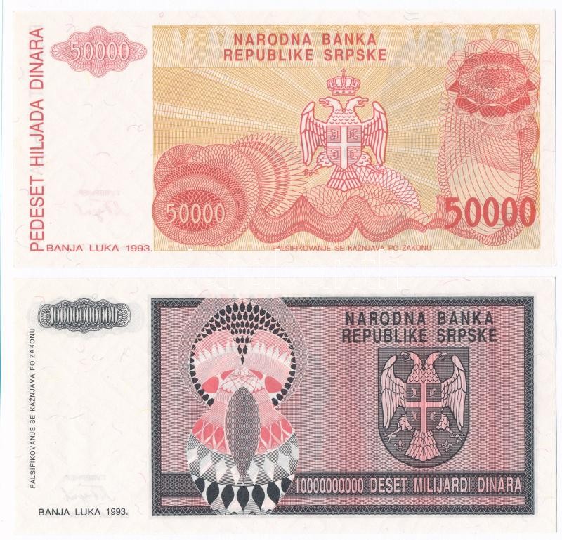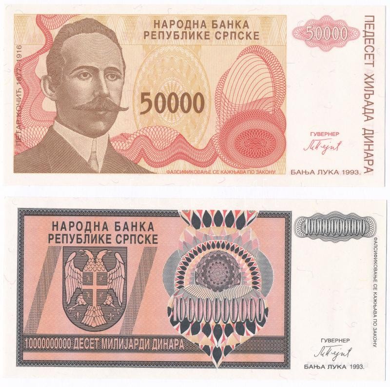 Bosznia-Hercegovina / Szerb Köztársaság / Banja Luka 1993. 10.000.000.000D + 50.000D mindkettő sorszám nélkül T:I