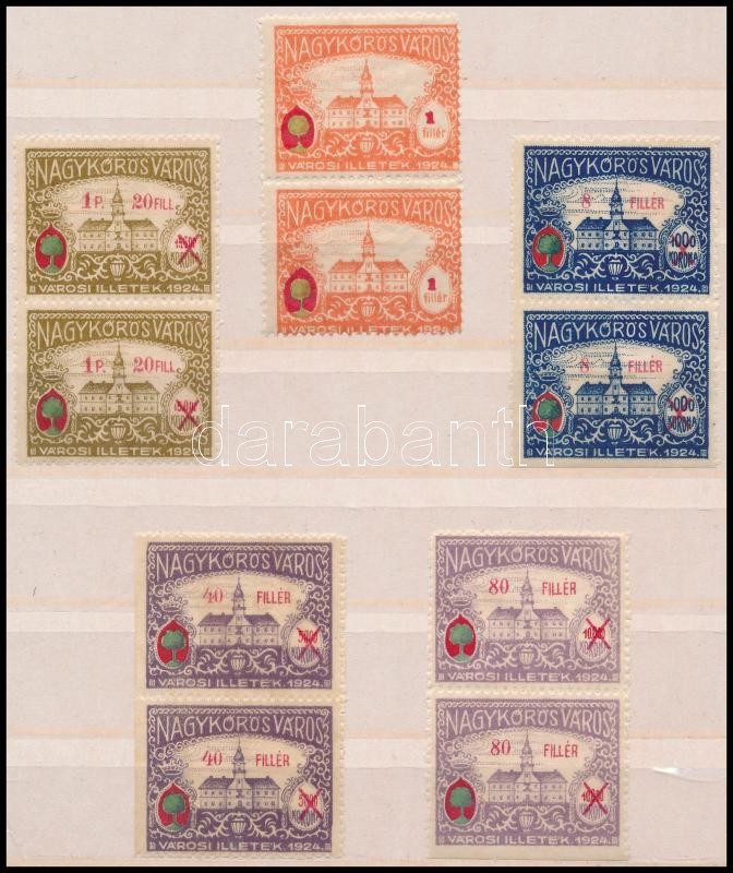1924 5 klf Nagykőrös városi illetékbélyeg pár, ebből 4 db 1 oldalon fo... https://www.darabanth.com/de/341-Fernauktion/341.0/Philatelie-und-Postgeschichte-Ungarn/Stempelmarken~500016/1924-5-klf-Nagykoros-varosi-illetekbelyeg-par-ebbol-4-db-1-oldalon-fogazatlan-2-db-kepbe-f~II1921675